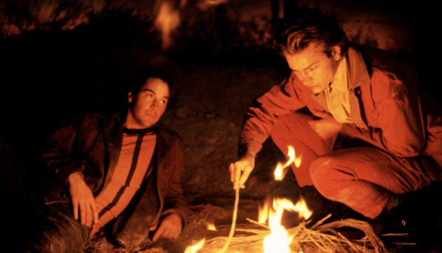 Faszinierend zu sehen, wie der Regisseur diesen Effekt erzielt. Natürlich kommt hier die Schauspielkunst von River Phoenix voll zum Tragen, seine Intensität und emotionale Durchlässigkeit. Aber auch das sorgfältige Arrangement spielt seinen Part: wie sie einmütig beieinander hocken, vertrauensvoll aneinander gelehnt, einer der wenigen Momente der Ruhe und Innigkeit. Dazu das prasselnde Lagerfeuer mit seinem Liebes- und Höllenrot. Überhaupt ist Rot die dominierende Farbe des Films, ein angeschmuddeltes Rot, ein rostiges Orange.