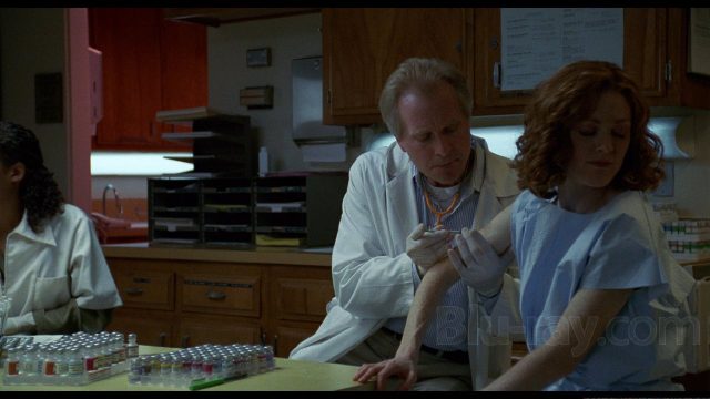 „Safe“ ist Todd Haynes zweiter Spielfilm und, typisch für den Regisseur, ein hermetisch verriegeltes Außenseiter:innen-Porträt, das um ein nicht greifbares Geheimnis kreist. So wahrt die Kamera stets Distanz zu Carol, beobachtet sie aus der Ferne, mit einem fast wissenschaftlich scheinenden Interesse. Dem Publikum wird es bewusst schwergemacht, sich mit der Protagonistin zu identifizieren. Julianne Moore spielt die Figur dabei wie einen Hauch – eine passive Hausfrau, die gern Milch trinkt, und deren säuselnde Stimme keinen Hinweis auf ihr Innenleben zulassen möchte. Carol bewegt sich traumwandelnd durch die höhlenartigen Zimmer der Villa, wie auch durch die sonnendurchflutete Wüstenlandschaft um Albuquerque. Trotz ihres scheinbaren Drangs angepasst zu erscheinen, wirkt sie immer und überall deplatziert. Ihr Ehemann, ihre Ärzte, der Guru und die Mitglieder der Kommune versuchen sie wieder und wieder zu überzeugen, dass sie ihr helfen können. Doch es wird nur schlimmer.